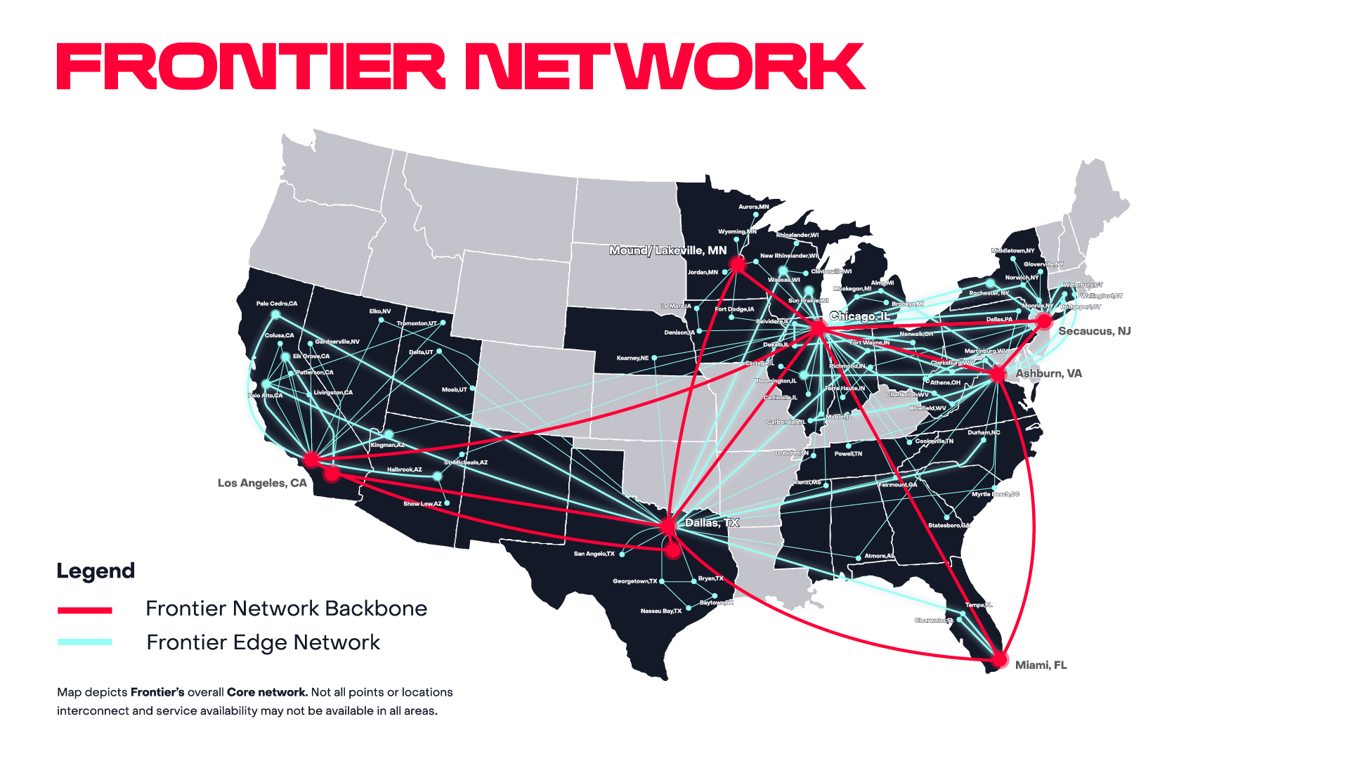 Frontier has been laying the foundation for connectivity since 1935. Today, we’re the fourth largest wireline carrier in the U.S., with a 25-state footprint and 180,000+ miles of fiber. But we’re focused on growth: We’re building Gigabit America – combining our vision, experience, and capabilities to bring super-high bandwidth (and the possibilities it entails) to you and your customers.